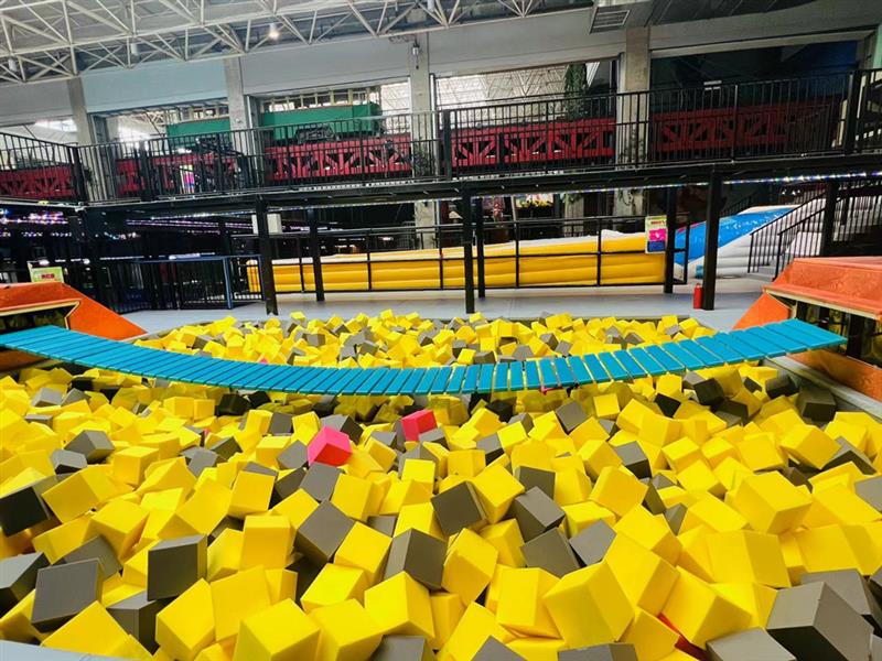 走進(jìn)這座室內(nèi)樂園,首先映入眼簾的便是那座引人注目的蕩橋。它仿佛一條蜿蜒曲折的巨龍,在空中舞動。蕩橋保證了游客的安全同時,又帶來了極大的刺激感。橋面下充滿了海綿,讓人們在盡情享受的同時,也能安心地邁出每一步。